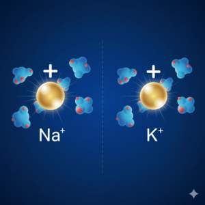 今回、Na⁺とK⁺の身体の中での通常のはたらきを見てきました。