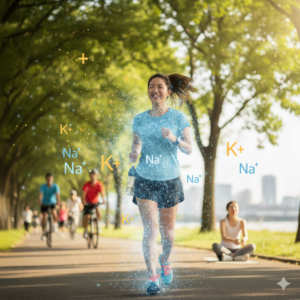 これら電解質は細胞の内と外での水分や浸透圧の調整、神経の伝達、筋肉の収縮など、
