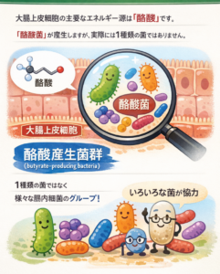 👉 大腸に届いて、酪酸菌が発酵 → 酪酸を産生